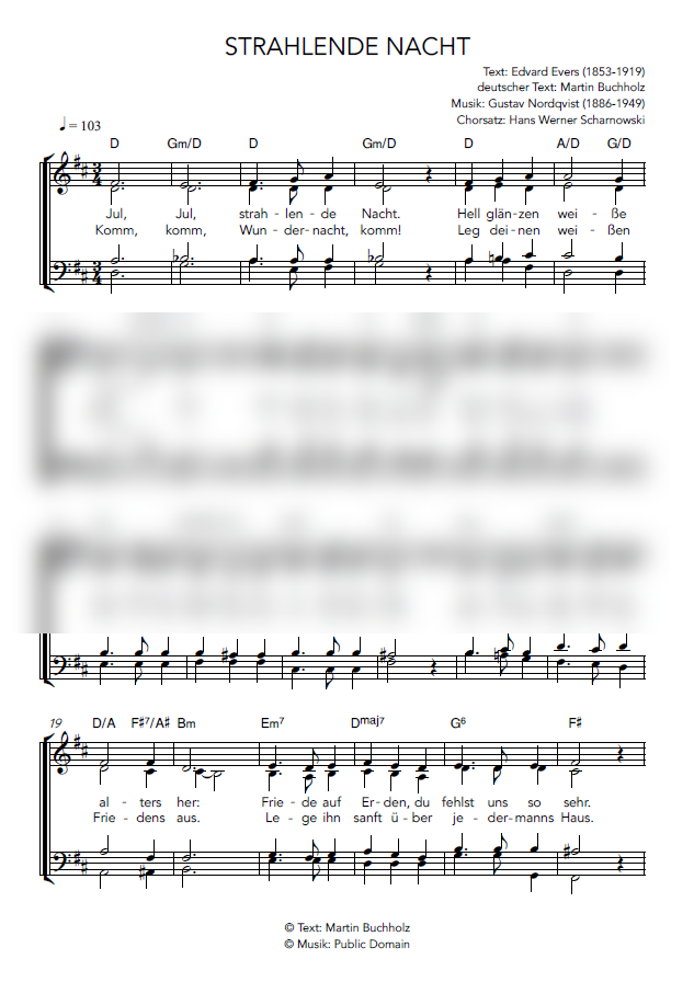 Hinweis: Sie erwerben mit dem Download das Recht, das Lied einmal für Ihren eigenen Gebrauch auszudrucken. Wenn Sie mehrere Notenausdrucke (z.B. für einen Chor) brauchen, appellieren wir an Ihre Fairness: Bitte kaufen Sie dann mehrere Ausdruckrechte. Bitte helfen Sie mit, dass Autoren und Verlag auch zukünftig Musik publizieren können. Herzlichen Dank.